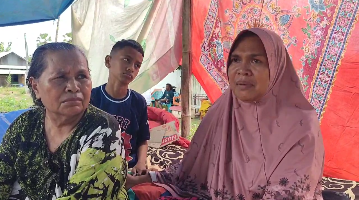 Hasan mengatakan saat ini dirinya bersama keluarga tidur di posko mandiri, lantaran tembok rumahnya kian banyak mengalami keretakan.